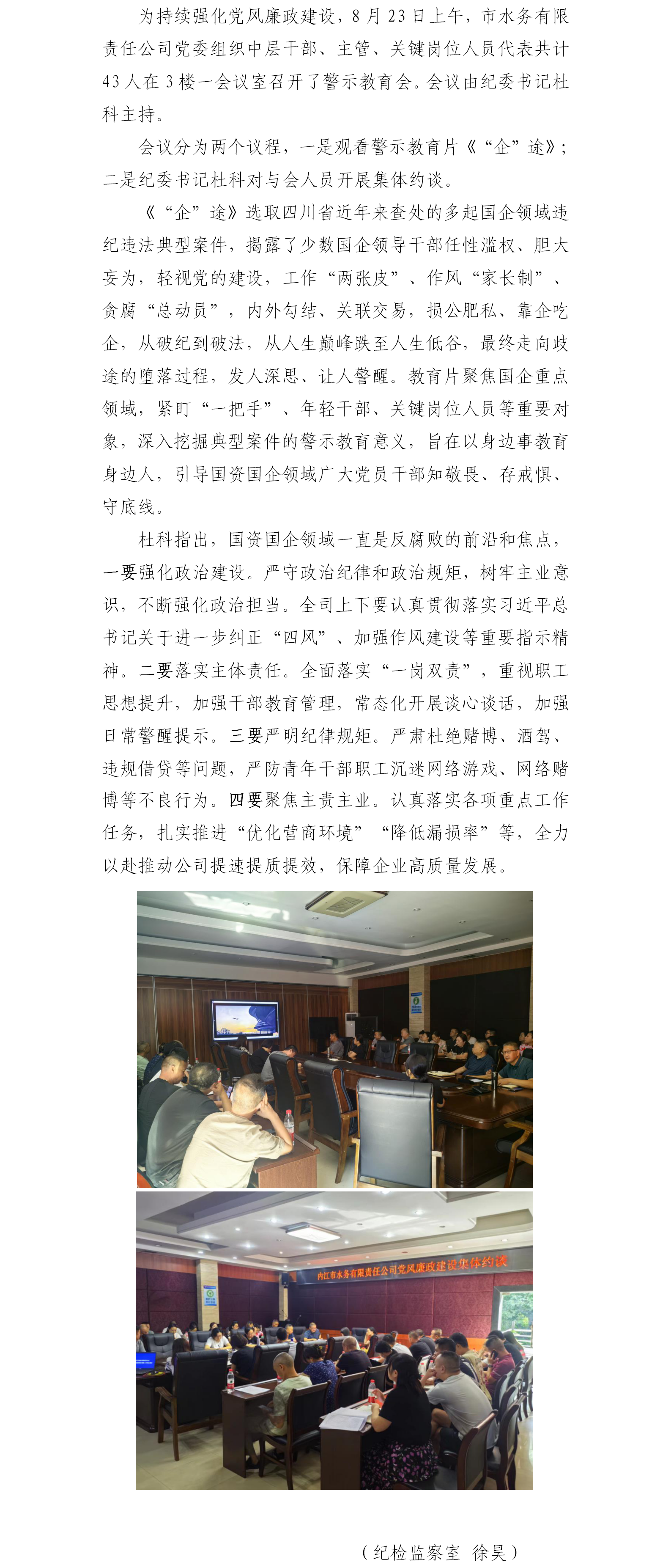 水務公司黨委組織開展警示教育