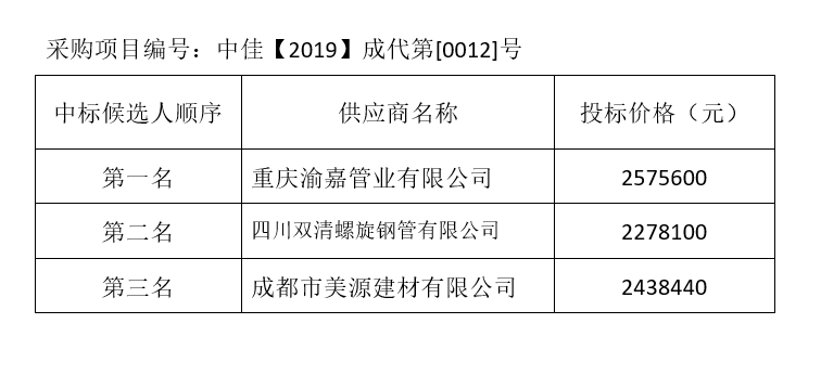 內(nèi)江市水務(wù)有限責(zé)任公司螺旋鋼管管材及管件采購項目評標結(jié)果公示