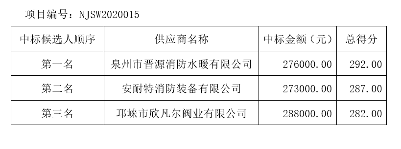 內(nèi)江市水務(wù)有限責(zé)任公司消火栓采購項(xiàng)目評標(biāo)結(jié)果公示