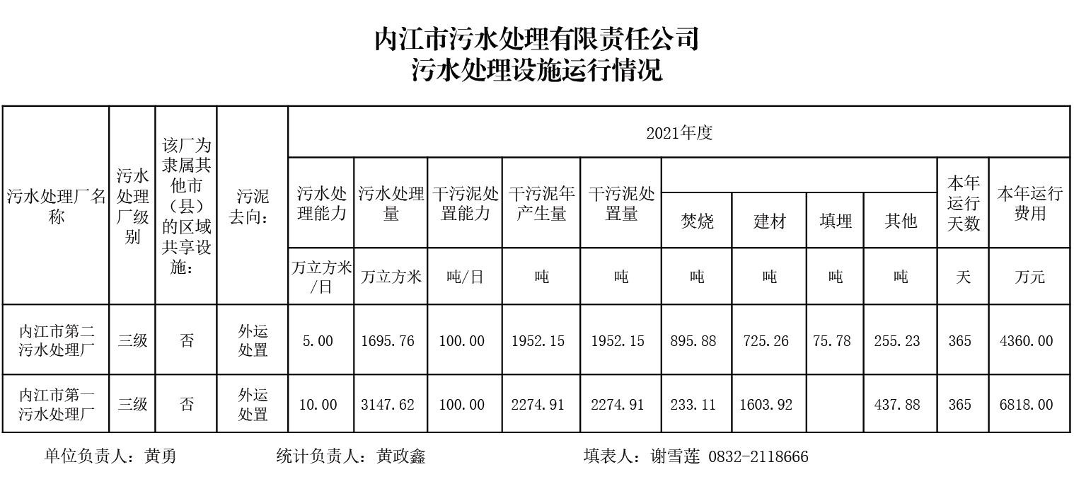 內(nèi)江市污水處理有限責(zé)任公司污水處理設(shè)施運行情況