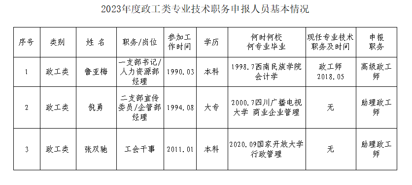 經(jīng)審核,魯亞梅同志符合申報(bào)高級(jí)政工師任職資格;吳柏霖、張茜、李昊謙3名同志符合申報(bào)工程師任職資格;李斌、楊程翔、劉靈漾、李永潔、黃俊雄、曾鑫、郭炯宏7名同志符合申報(bào)助理工程師任職資格;倪勇、張雙馳2名同志符合申報(bào)助理政工師任職資格。現(xiàn)對(duì)其申報(bào)基本情況予以公示。公示期限自9月18日至9月22日。如有異議,請(qǐng)?jiān)诠酒谙迌?nèi)通過(guò)書面或其他形式向公司人力資源部反映。
