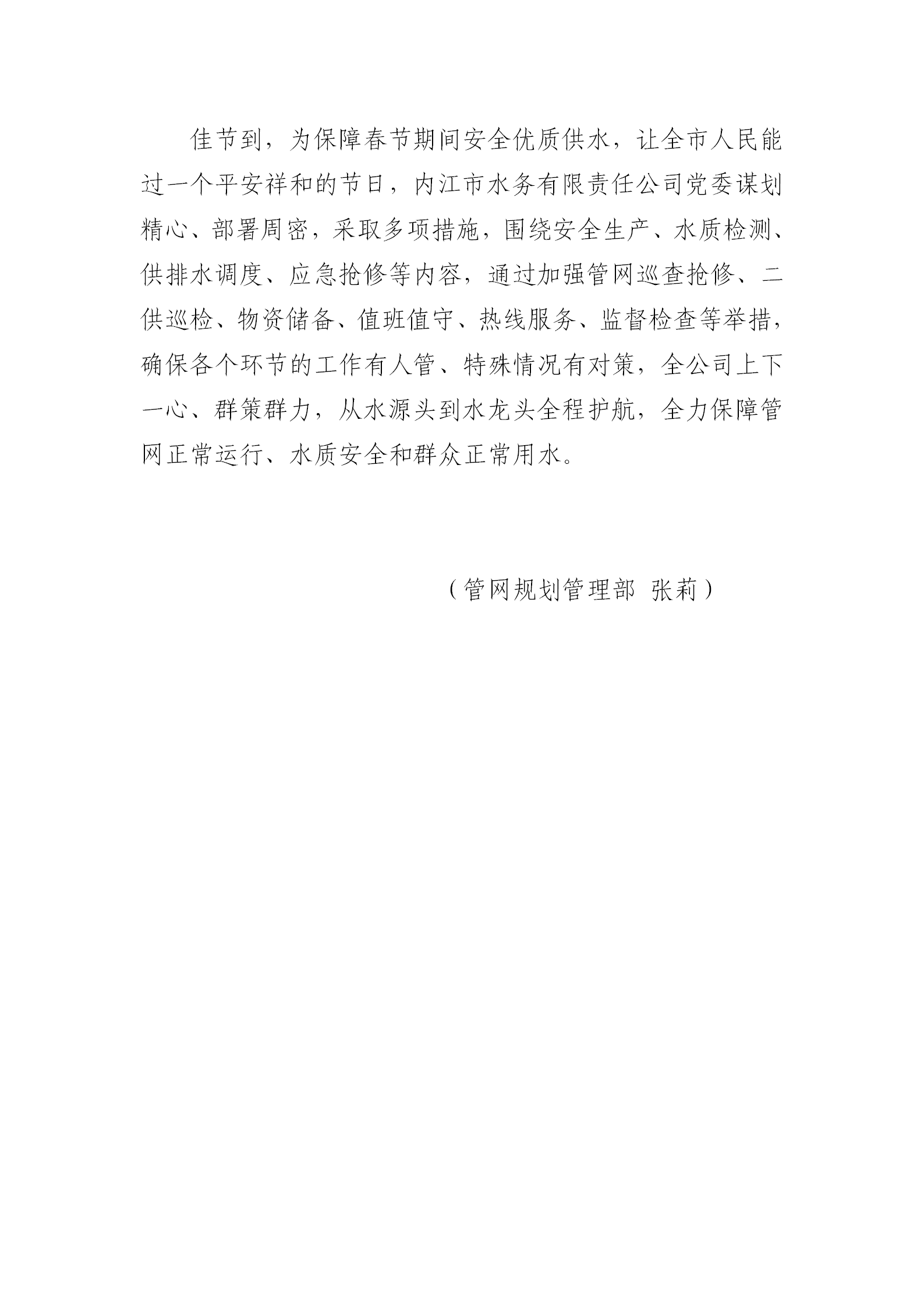 佳節到 從水源頭到水龍頭全程護航