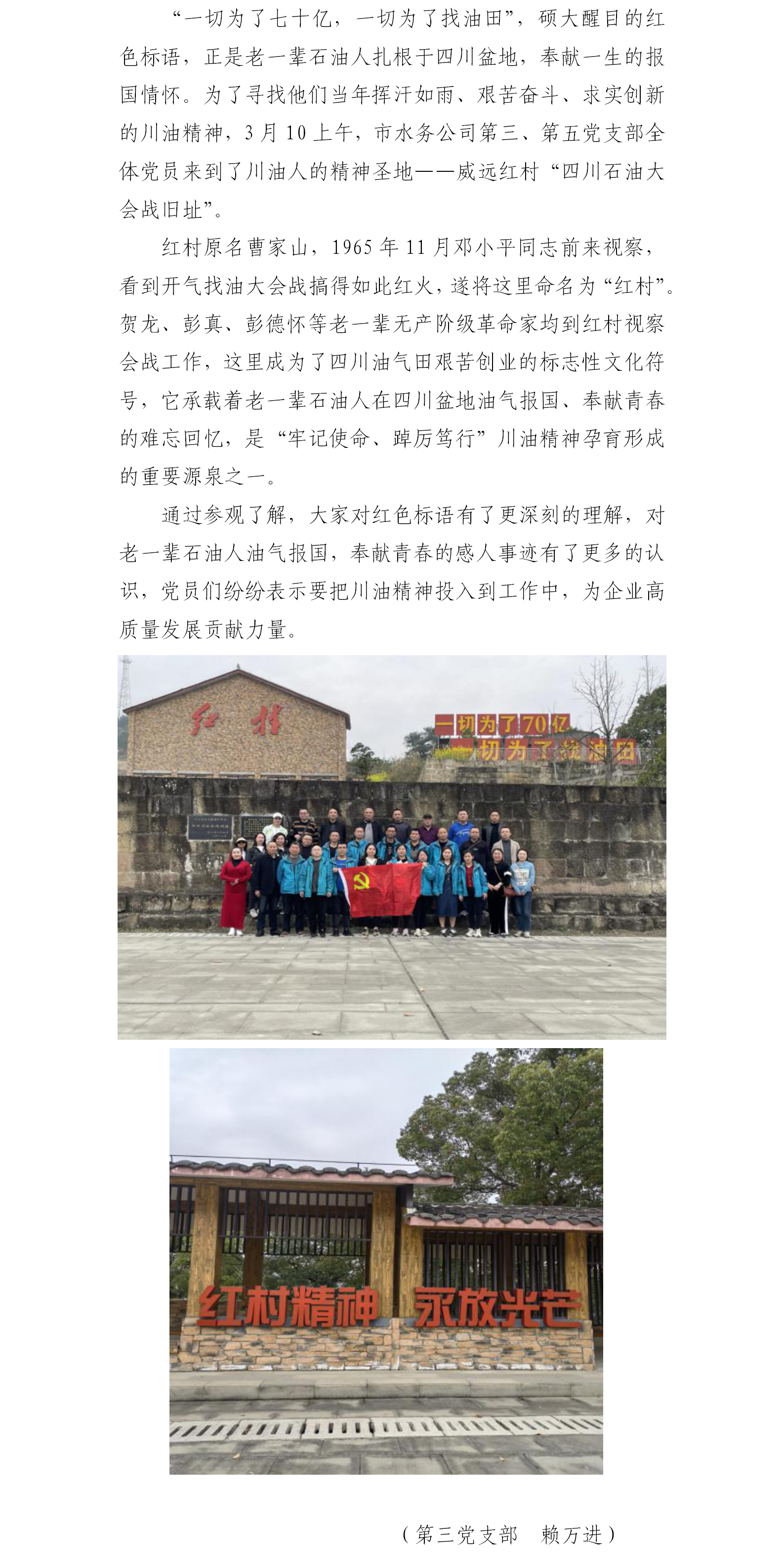 黨支部聯合開展主題黨日活動—— 參觀川油人的精神圣地:“紅村”