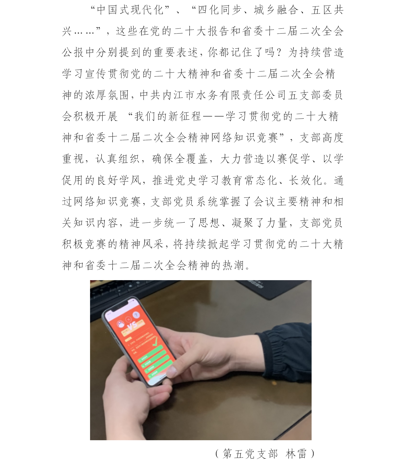 水務(wù)公司第五黨支部積極參與“黨的二十大精神及省委十二屆二次全會(huì)精神網(wǎng)絡(luò)知識競賽”
