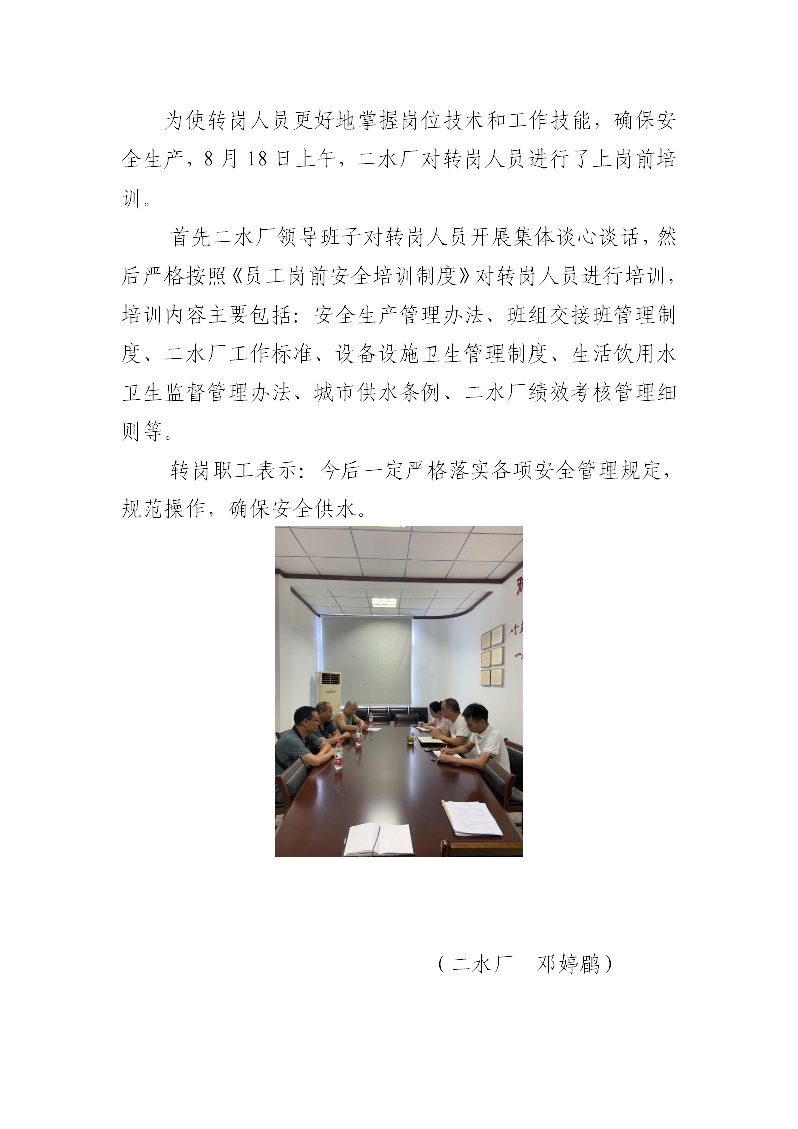 二水廠完成轉(zhuǎn)崗人員崗前培訓(xùn)工作