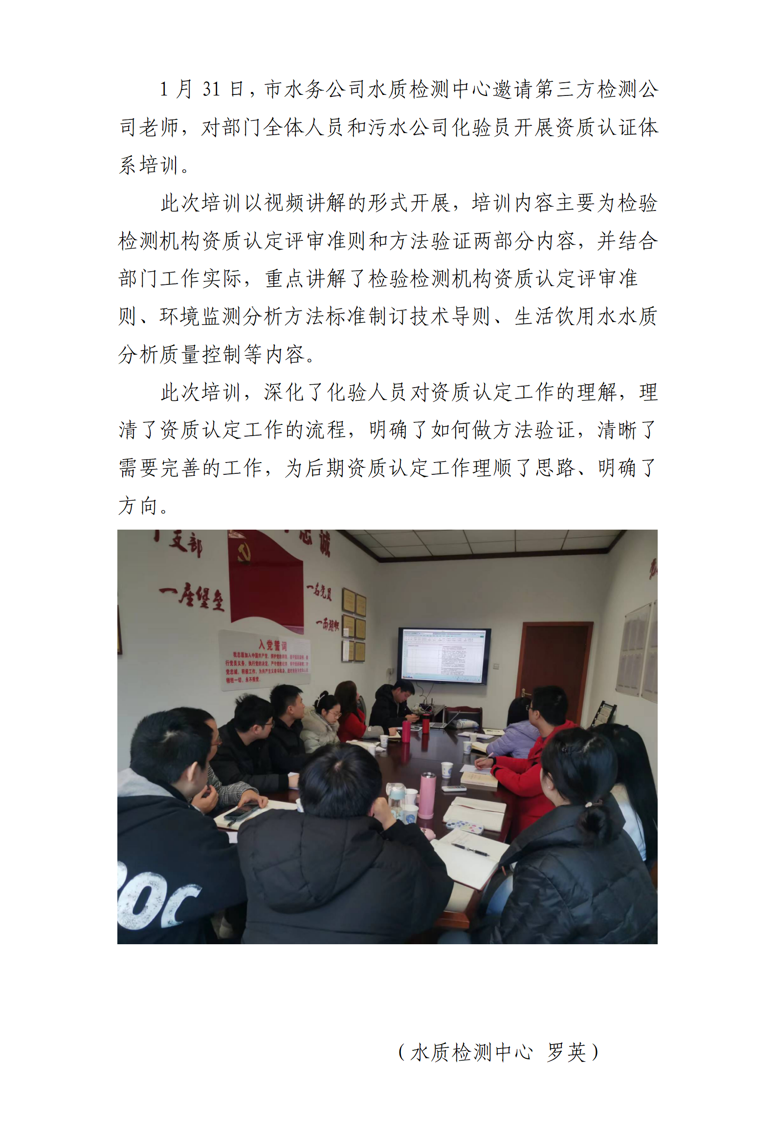 水質(zhì)檢測(cè)中心參加資質(zhì)認(rèn)證體系培訓(xùn)