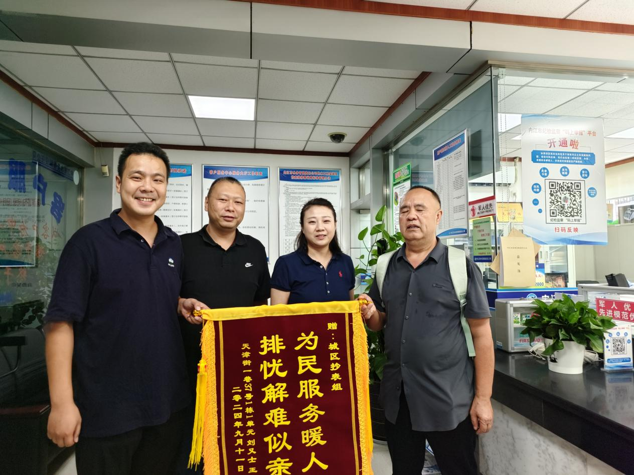 9月11日,用戶劉先生特意送來一面錦旗,表揚我司抄表人員的專業、細心和熱情。民生無小事、件件是大事,未來水務人將繼續為用戶提供便捷、貼心的用水服務,為群眾辦實事、辦好事、解難題,不斷提高老百姓用水獲得感、幸福感、安全感。