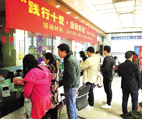 乘“踐行十愛·德耀甜城”春風,秉承“做好供水服務、提高服務品質”之傳統,今年來,內江市水務有限責任公司(以下簡稱“水司”)推出了一系列“惠民、便民”服務,希冀將溫暖傳遞到家家戶戶…… 金秋十月,惠民萬家 “請幫我預存800元……”“我要領口炒鍋……”10月11日上午9時許,“水司”玉溪路收費廳里人潮涌動、熱鬧非凡。 窗口前,預存水費的用戶群整齊劃一地排著長隊;登記處,工作人員井然有序地發放禮品、征集“作風效能建設征求意見表”;庫房內,餐洗液、食用油、炒鍋等禮品完好裝箱存放,正“翹首以盼”地等待用戶前來認領。 “惠”聚金秋,樂享好禮。據玉溪路收費廳組長周麗萍介紹,為感謝廣大用戶對城市供排水事業的長期支持及幫助,“水司”特精心策劃、推出了為期21天的“金秋好禮”預存水費活動。即日起至10月31日,凡屬“水司”供水區域內的生活用水戶(一表一戶),結清欠費后預存相應數額的水費,憑預存收據,便可現場領取相應的禮品回饋。 禮品為:預存200元,贈送雕牌餐洗一桶或其他;預存400元,贈送斑布生態竹紙一提或其他;預存600元,贈送金龍魚葵花籽油(4L)一桶或其他;預存800元以上,贈送蘇泊爾燉鍋一口或蘇泊爾炒鍋一口。 活動一經啟動,便獲得廣大用戶的熱烈反響。“今天上午,前來預存水費、領取禮品的用戶絡繹不絕。”周麗萍說,截止到當天10點半,僅玉溪路收費廳參與活動的用戶就突破了130人;而平安路、大千路、交通路、白馬鎮四處同步推行活動的收費廳,累計登記430余名參與用戶。 “前兩天,小區里都在沸沸揚揚地傳‘水司’將舉辦回饋活動。”家住市中區甜城大道某小區的用戶張光華,今天特意抽空前來預存了800元水費,并領取了一口炒鍋。“繳水費還能領禮品,這樣的好事我一定會在朋友圈大力宣傳,爭取讓身邊更多人知曉。” 左手一口燉鍋、右手一口炒鍋。預存1600元,抱得禮物歸,家住市中區臨江路某小區的用戶宋浩笑容滿面:“對于用水戶來說,這活動真的‘接地氣’。”他希望,今后,“水司”能將類似的惠民傳統長久地延續下來。 繳納水費 不跑“冤枉路” “今后您隨時隨地,只要用手機就可以繳費了……” 近日,家住市中區臨江路528號的黃女士,一如既往地來到“水司”玉溪路收費廳。當她在排隊繳納水費時,“意外”地受到“水司”客戶服務部副經理樊曉麗的熱情接待。 原來,“水司”已與中國建設銀行網站(手機銀行)、中國農業銀行網站(手機銀行)、中國工商銀行網站(手機銀行)、四川省農村信用社網站(手機銀行)取得了合作,用戶登錄以上銀行網站個人銀行(之一),進入水費繳費界面便可繳納水費。 此外,“水司”還相繼開通了“中國電信翼APP”、“支付寶APP”繳費方式,用戶登陸上述APP(之一),在首頁點擊進入生活繳費界面,也可繳納水費。 經過樊曉麗一番詳細講解、實際操作,不到20分鐘,黃女士便熟練地掌握了手機繳費的“技能”。“我現在50多歲了,每次繳費跑來跑去,怪累人的。”她笑呵呵地說,“這下好了,今后再也不用跑‘冤枉路’了,這樣的服務太貼心了!” “手機繳費的服務,已開通了一段時間了。”“水司”客戶服務部負責人左海霞告訴記者,像這種“新”服務,年輕人接受起來非常快。“但中年人可能就不那么‘習以為常’了。” 為將這項便捷、優質、高效的服務推送到各類人群,滿足廣大用戶對方便用水的需求,自5月中旬以來,“水司”便挑選了樊曉麗等8名優秀服務員工,在每天繳費的高峰期,分別派駐到東興區平安路收費廳、大千路收費廳以及市中區玉溪路收費廳、交通路收費廳,開展“代收水費業務”專項宣傳活動。 “截至目前,活動的服務人群已達2000余人。”左海霞說,宣傳活動將作為公司常態化工作,一直持續到今年年底。