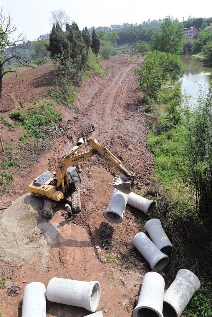 日前,記者來到位于東興區新江街道辦事處清流村(沱江、清流河、小青龍河交匯處),看到不少工人在工地上忙碌,有的開著挖機平場地,有的在挖溝槽埋管網,有的在用貨車運輸土方,好不熱鬧。